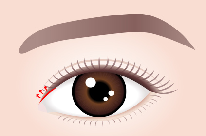 0245도 방향으로 결막선의 정확한 라인을 따라 위쪽으로 올림