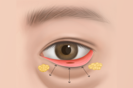 노화가 진행됨에 따라 눈 밑을 싸고 있는 격막의 힘이 약해져 눈꺼풀 아랫부분이 처지거나 불룩 튀어나오는 현상을 개선하는 수술법입니다.