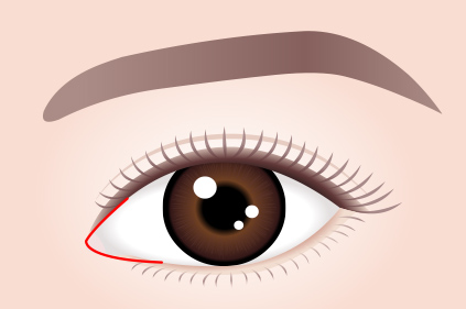 0245도 방향으로 결막선의 정확한 라인을 따라 위쪽으로 올림